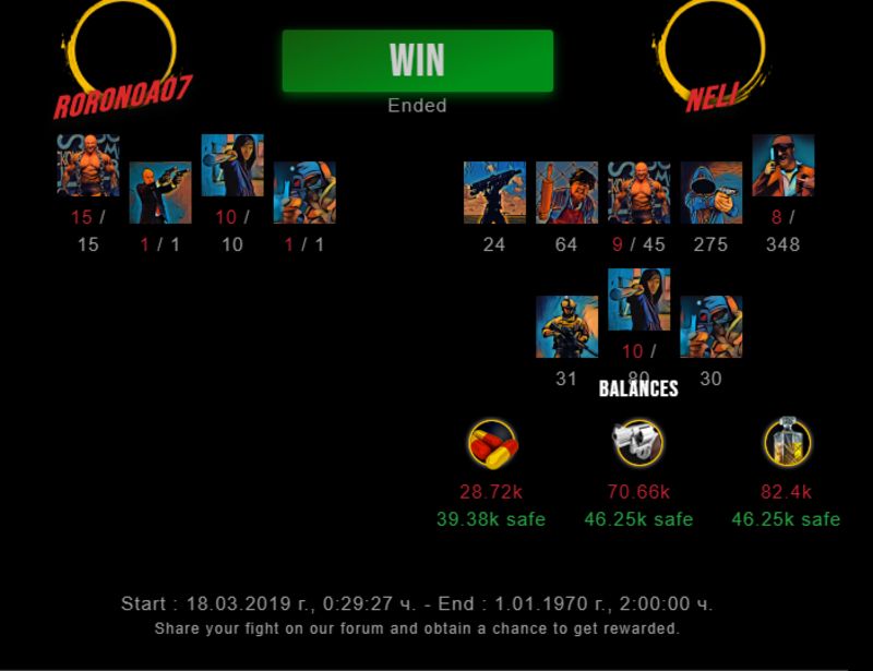 Congratulations @neli ! Your fight received an upvote of 1% from the King Dealer as incentive for your activity and as a gratitude for your support to the game.