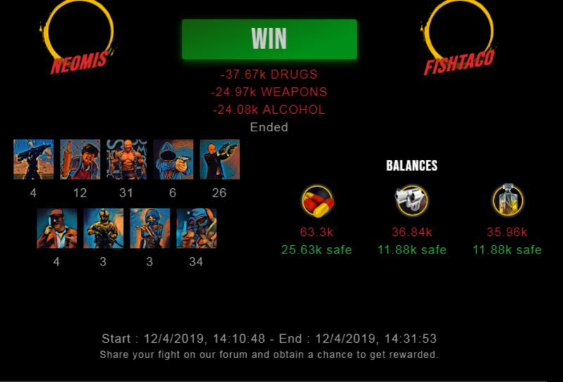 Check my latest fight ! neomis vs fishtaconeomis (39)in #drugwars-fight • 7 years ago #gaming #fight #dw