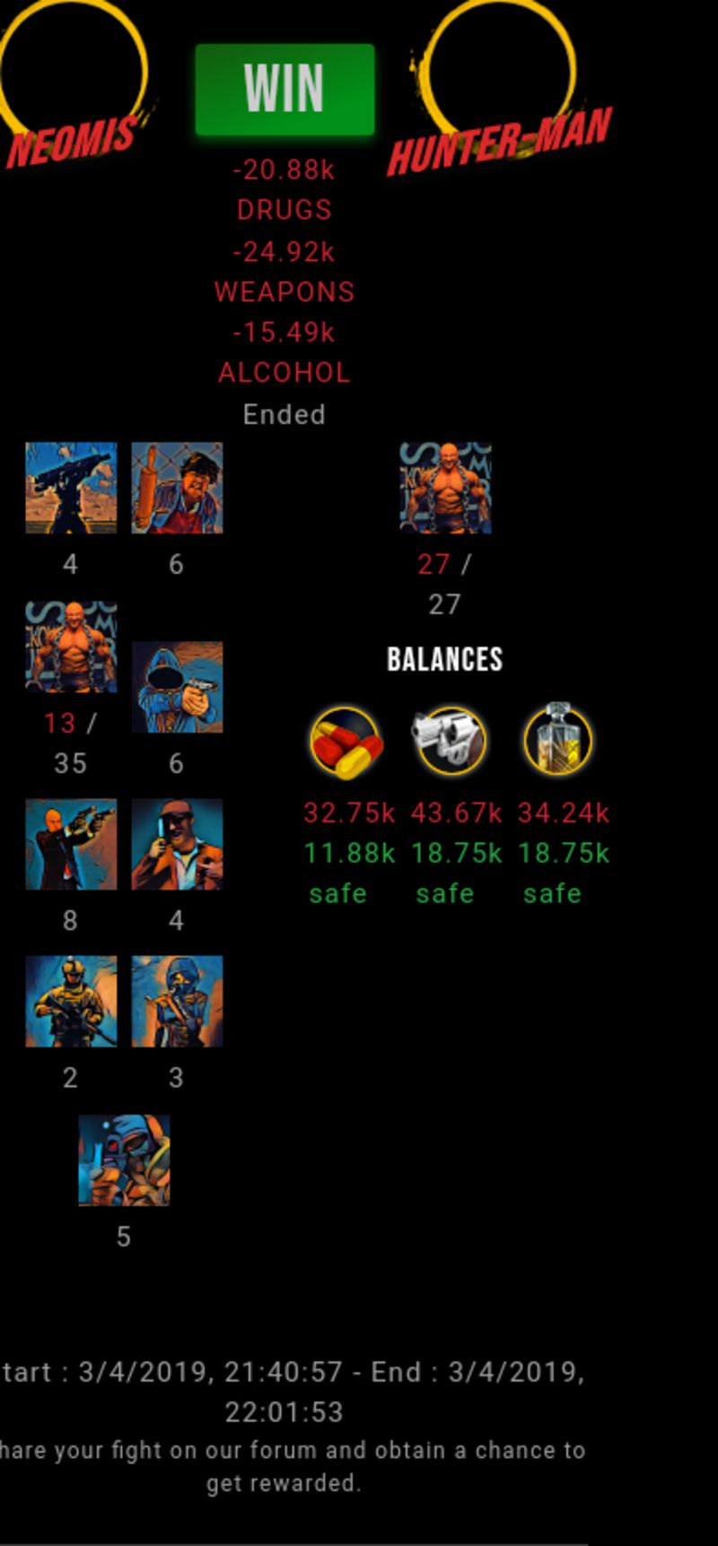 Check my latest fight ! neomis vs hunter-manneomis (39)in #drugwars-fight • 7 years ago #gaming #fight #dw