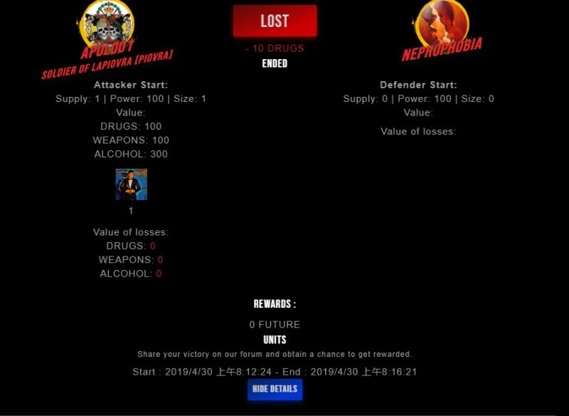 Congratulations @nephophobia ! Your fight received an upvote of 9% from the Dealer as incentive for your activity and as a gratitude for your support to the game.