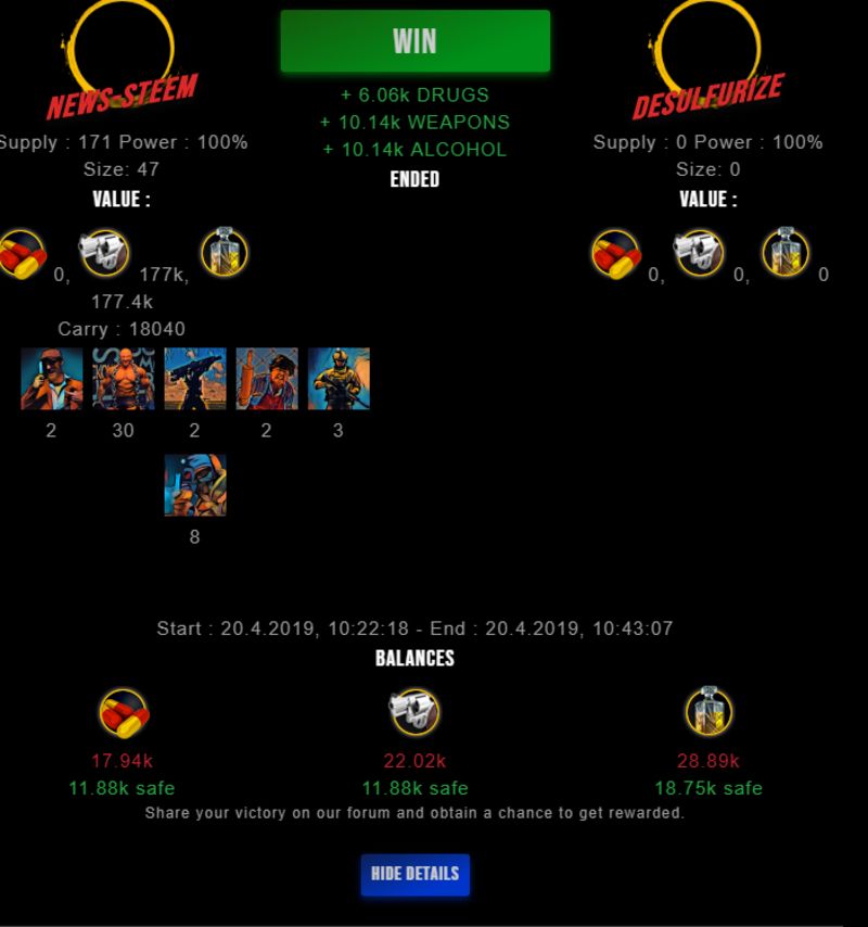 Check my latest fight ! undefined vs undefinednews-steem (49)in #drugwars-fight • 7 years ago #gaming #fight #dw