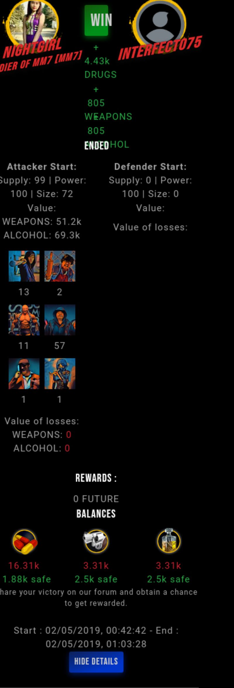 Check my latest fight ! nightgirl vs interfecto75nightgirl (57)in #drugwars-fight • 7 years ago #gaming #fight #dw