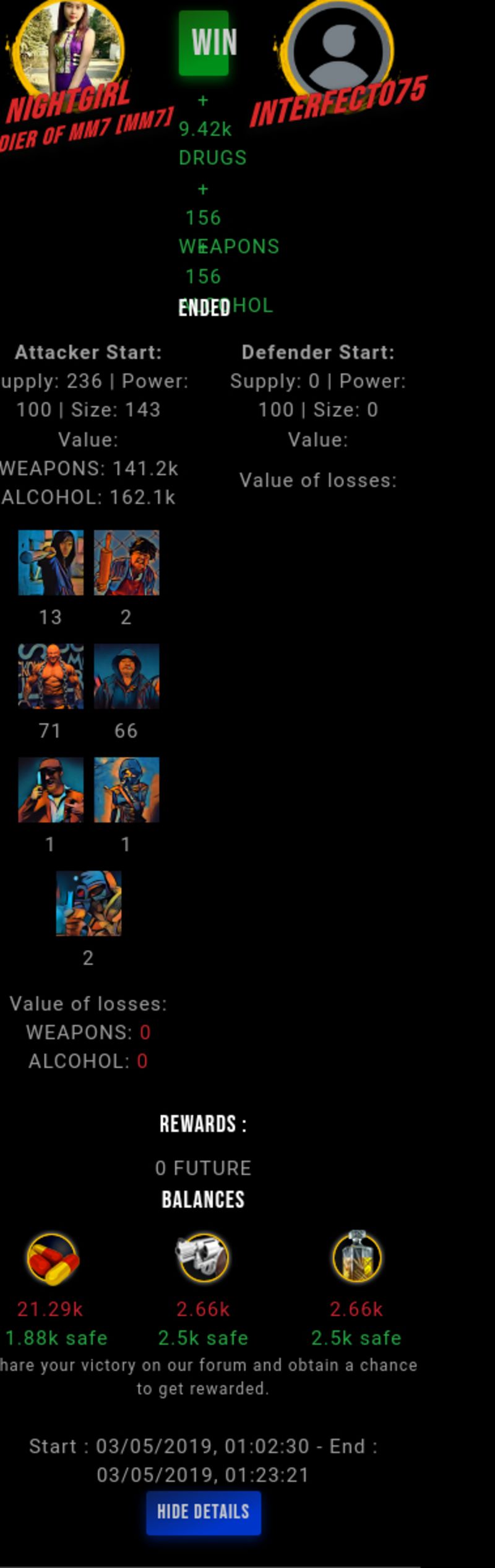 Check my latest fight ! nightgirl vs interfecto75nightgirl (57)in #drugwars-fight • 7 years ago #gaming #fight #dw
