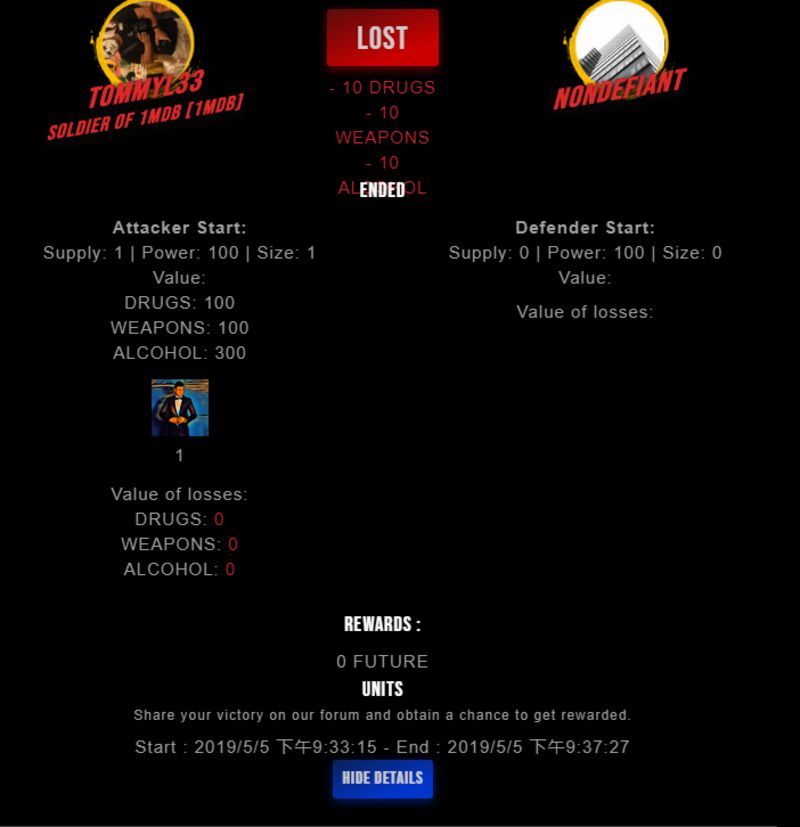 Check my latest fight ! tommyl33 vs nondefiantnondefiant (26)in #drugwars-fight • 7 years ago #gaming #fight #dw