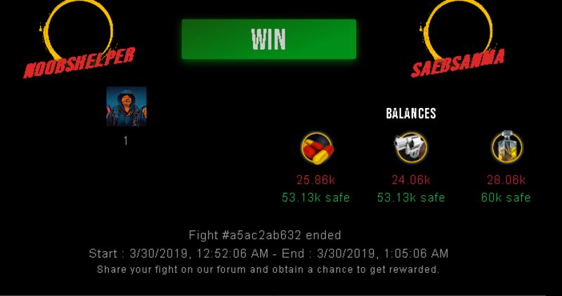 Check my latest fight ! noobshelper vs saebsanmanoobshelper (41)in #drugwars-fight • 7 years ago #gaming #fight #dw