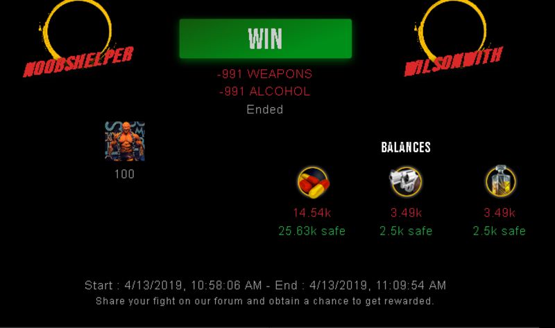 Check my latest fight ! noobshelper vs wilsonwithnoobshelper (41)in #drugwars-fight • 7 years ago #gaming #fight #dw