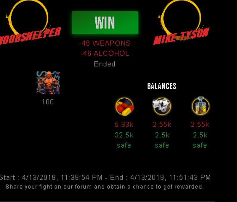 Check my latest fight ! noobshelper vs mike-tysonnoobshelper (41)in #drugwars-fight • 7 years ago #gaming #fight #dw