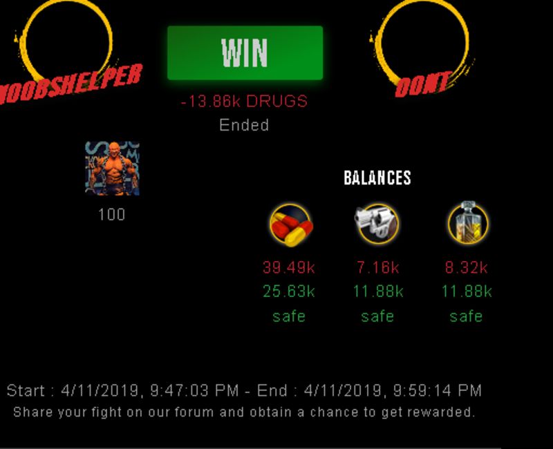 Check my latest fight ! noobshelper vs oontnoobshelper (41)in #drugwars-fight • 7 years ago #gaming #fight #dw