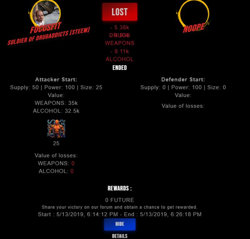 Congratulations @noope ! Your fight received an upvote of 2.1% from the King Dealer as incentive for your activity and as a gratitude for your support to the game.
