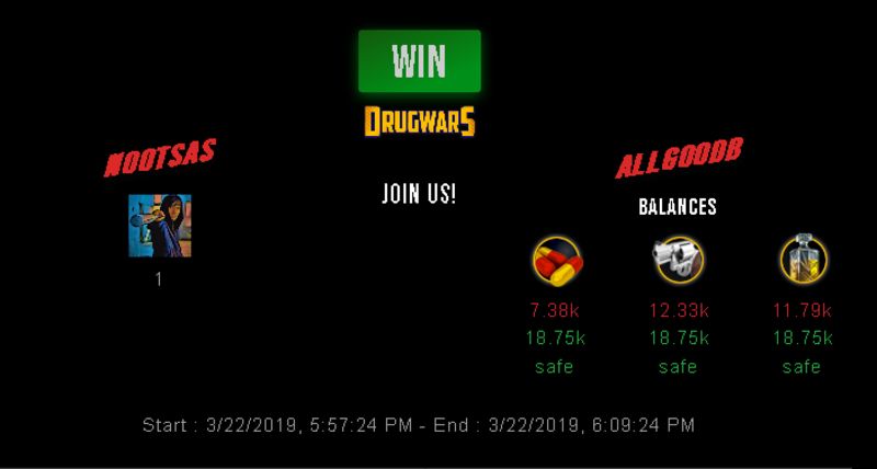 Check my latest fight ! nootsas vs allgoodbnootsas (31)in #drugwars-fight • 7 years ago #gaming #fight #dw