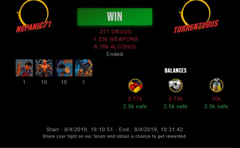Check my latest fight ! nopanic71 vs torrentuousnopanic71 (36)in #drugwars-fight • 7 years ago #gaming #fight #dw