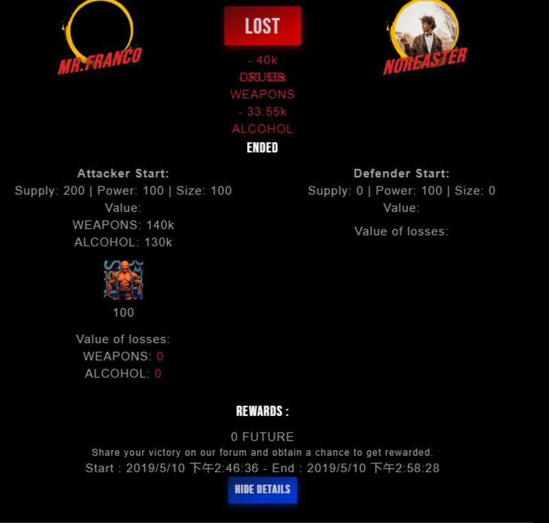 Check my latest fight ! mr.franco vs noreasternoreaster (25)in #drugwars-fight • 7 years ago #gaming #fight #dw