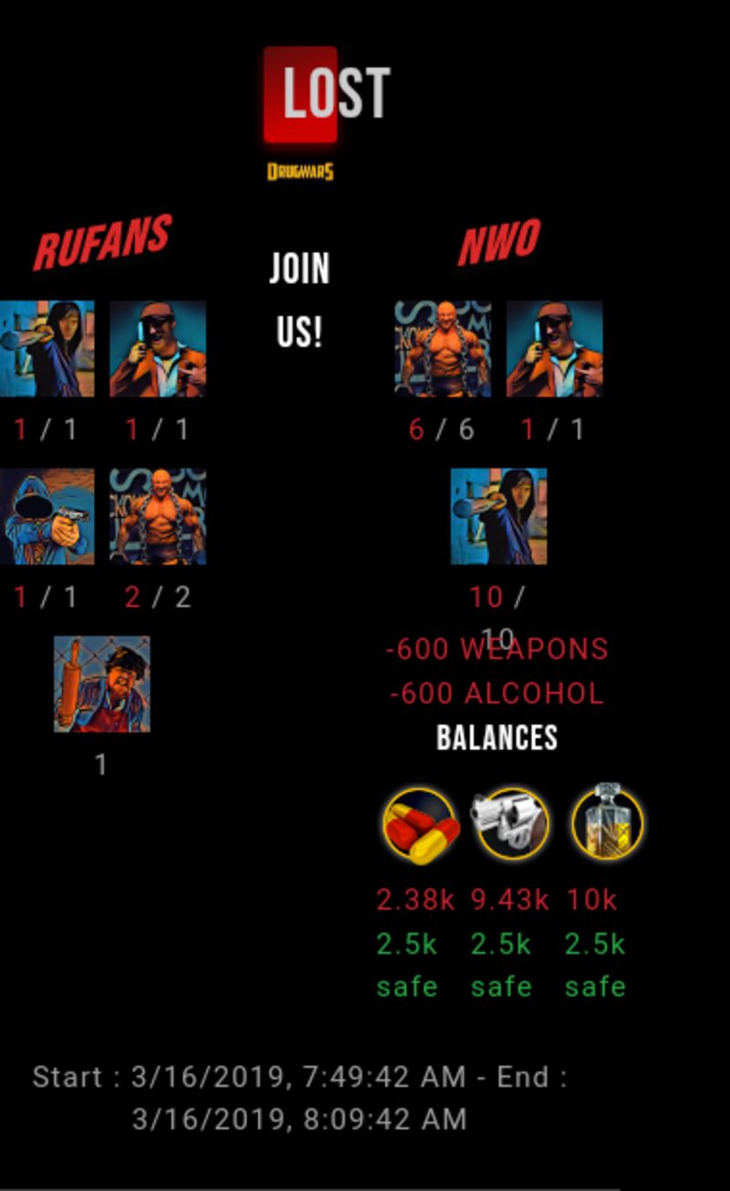 Congratulations @nw0 ! Your fight received an upvote of 20% from the Dealer as incentive for your activity and as a gratitude for your support to the game. Want to know more about DrugWars.io?
