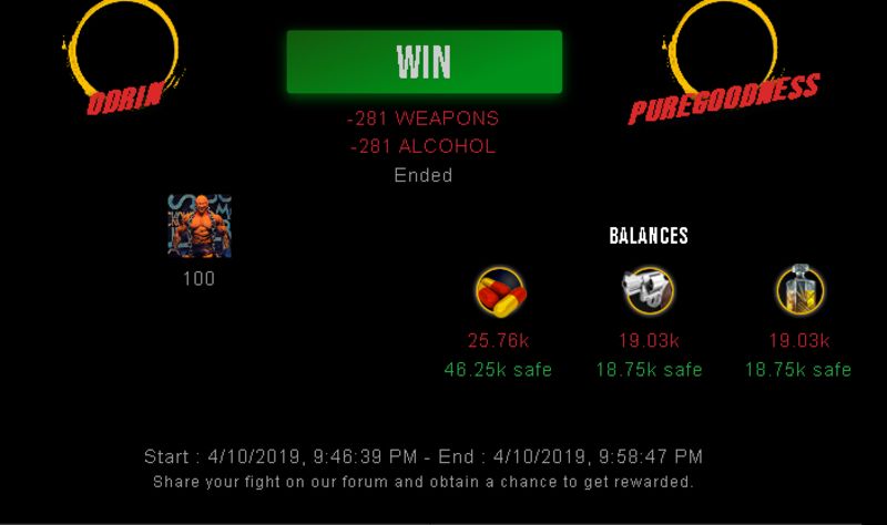 Check my latest fight ! odrin vs puregoodnessodrin (36)in #drugwars-fight • 7 years ago #gaming #fight #dw