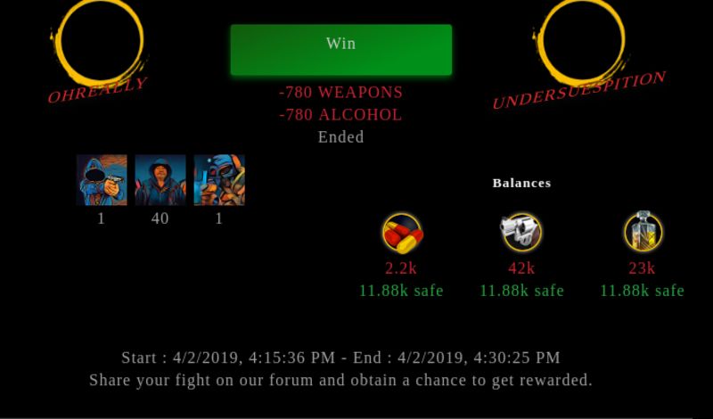 Check my latest fight ! ohreally vs undersuespitionohreally (43)in #drugwars-fight • 7 years ago #gaming #fight #dw