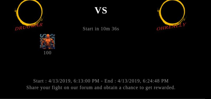 Congratulations @ohreally ! Your fight received an upvote of 1% from the King Dealer as incentive for your activity and as a gratitude for your support to the game.