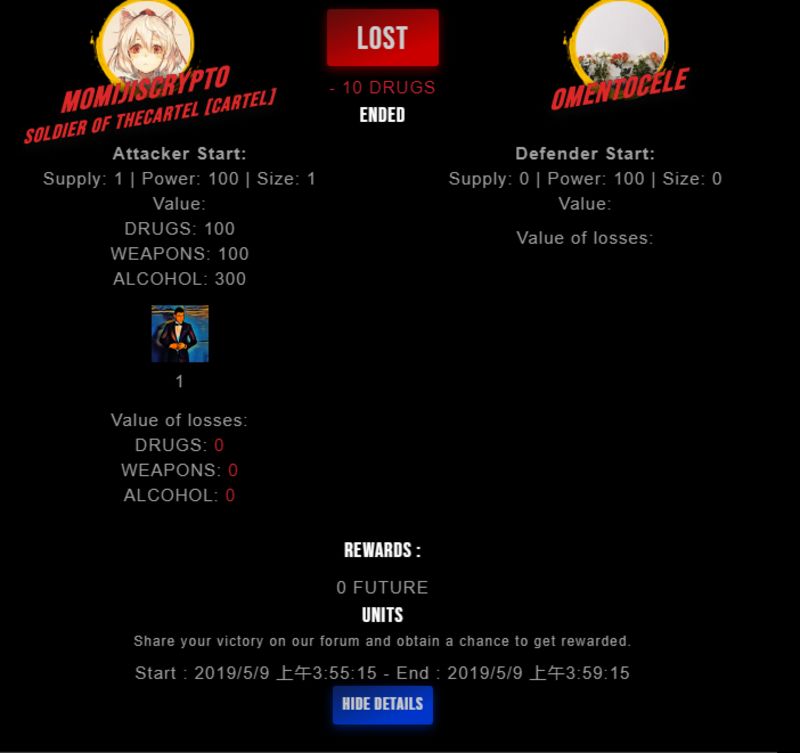 Check my latest fight ! momijiscrypto vs omentoceleomentocele (26)in #drugwars-fight • 7 years ago #gaming #fight #dw