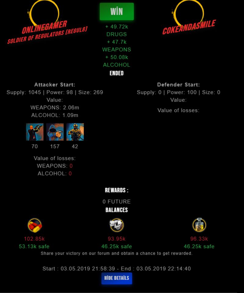 Check my latest fight ! onlinegamer vs cokeandasmileonlinegamer (63)in #drugwars-fight • 7 years ago #gaming #fight #dw