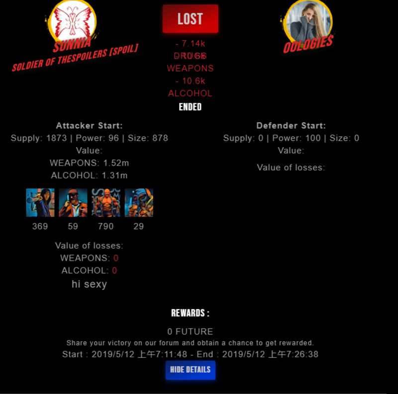 Congratulations @oologies ! Your fight received an upvote of 10% from the Dealer as incentive for your activity and as a gratitude for your support to the game.