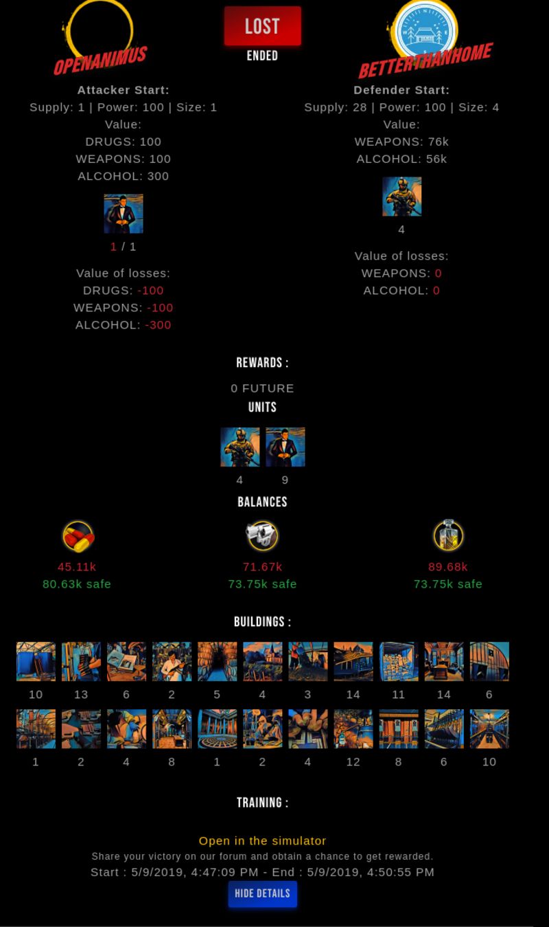 Check my latest fight ! openanimus vs betterthanhomeopenanimus (56)in #drugwars-fight • 7 years ago #gaming #fight #dw