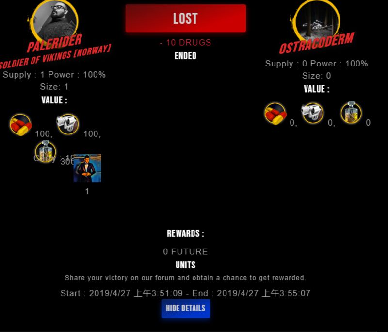 Check my latest fight ! palerider vs ostracodermostracoderm (25)in #drugwars-fight • 7 years ago #gaming #fight #dw