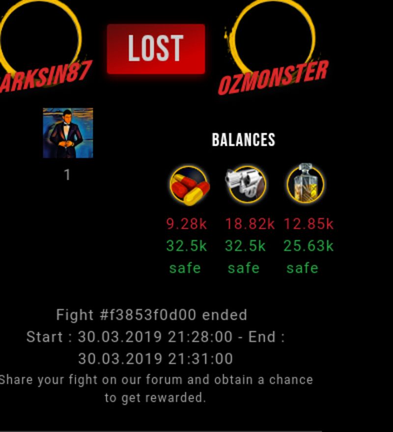 Check my latest fight ! darksin87 vs ozmonsterozmonster (29)in #drugwars-fight • 7 years ago #gaming #fight #dw
