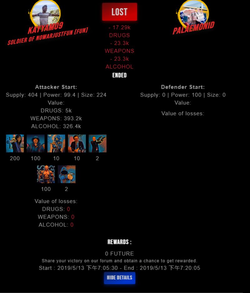 Check my latest fight ! kayyam09 vs palaemonidpalaemonid (41)in #drugwars-fight • 7 years ago #gaming #fight #dw