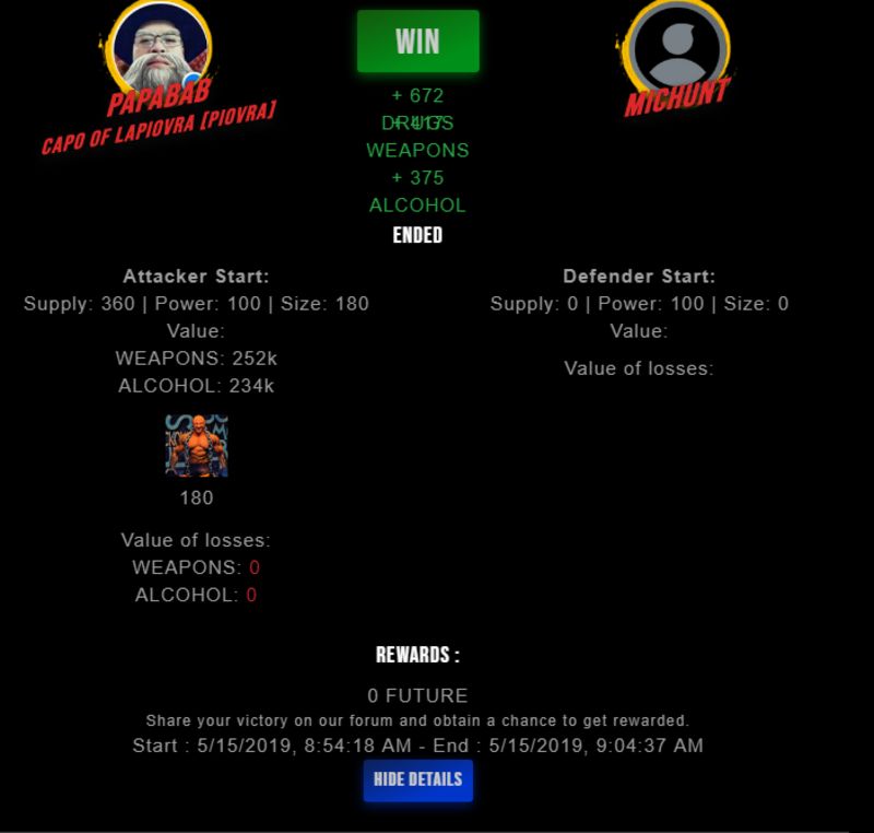 Congratulations @papabab ! Your fight received an upvote of 7.4% from the King Dealer as incentive for your activity and as a gratitude for your support to the game.
