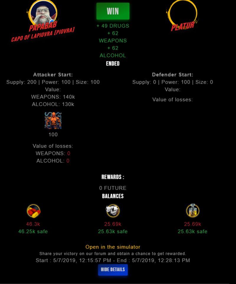 Congratulations @papabab ! Your fight received an upvote of 7.4% from the King Dealer as incentive for your activity and as a gratitude for your support to the game.
