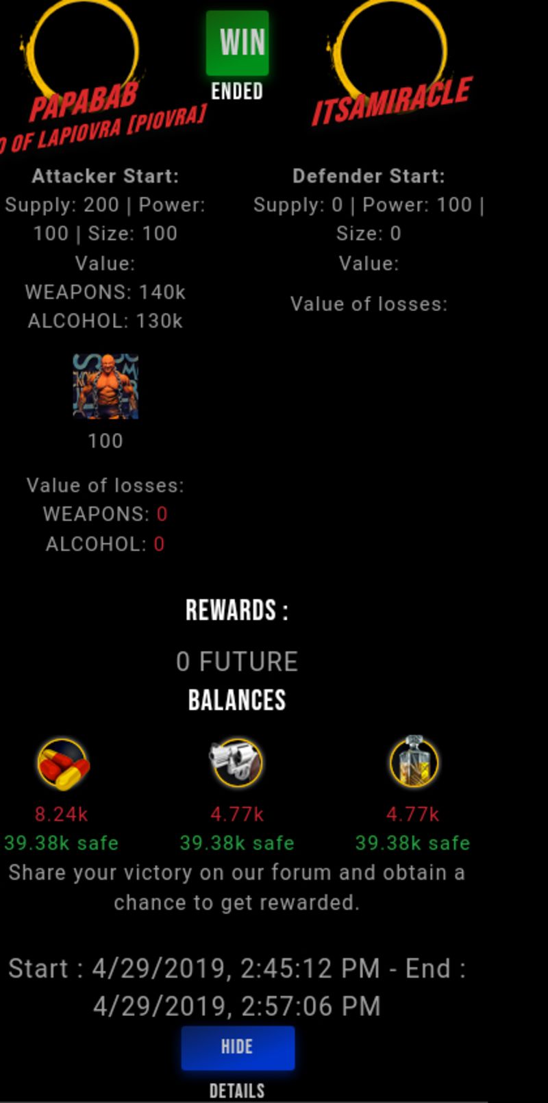 Congratulations @papabab ! Your fight received an upvote of 6.2% from the King Dealer as incentive for your activity and as a gratitude for your support to the game.