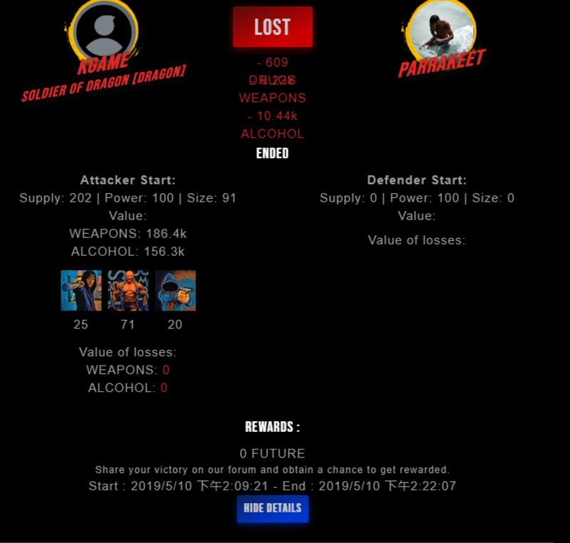 Check my latest fight ! kgame vs parrakeetparrakeet (29)in #drugwars-fight • 7 years ago #gaming #fight #dw