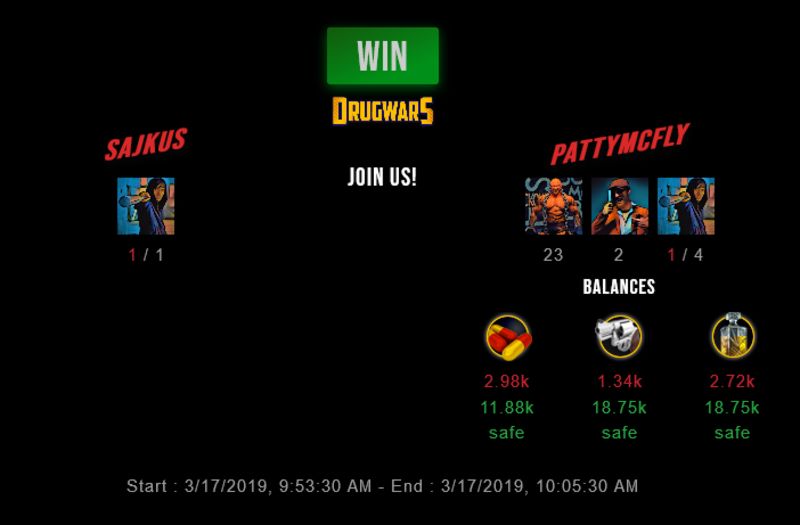 Check my latest fight ! sajkus vs pattymcflypattymcfly (53)in #drugwars-fight • 7 years ago #gaming #fight #dw