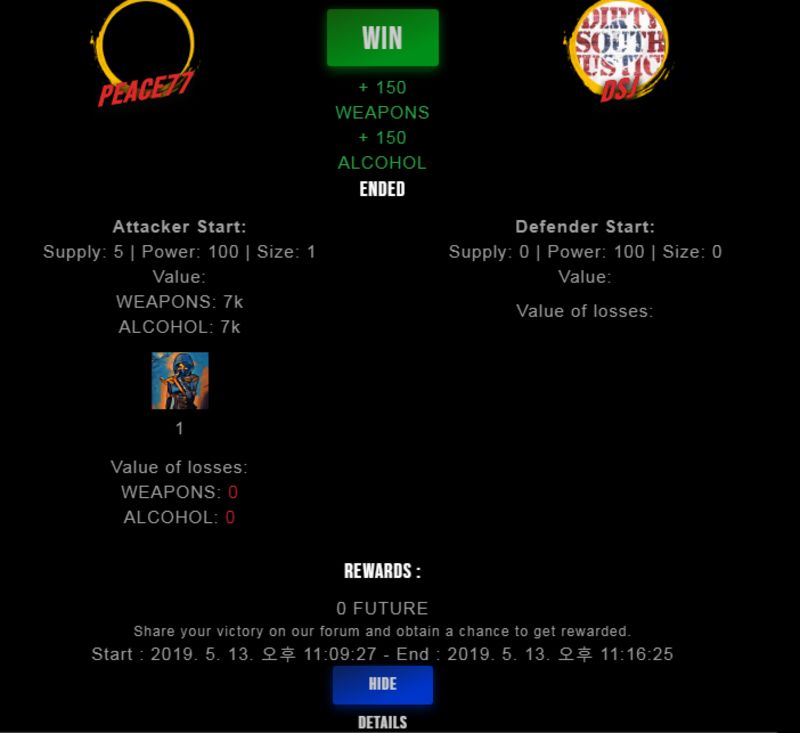 Congratulations @peace77 ! Your fight received an upvote of 3.3% from the King Dealer as incentive for your activity and as a gratitude for your support to the game.