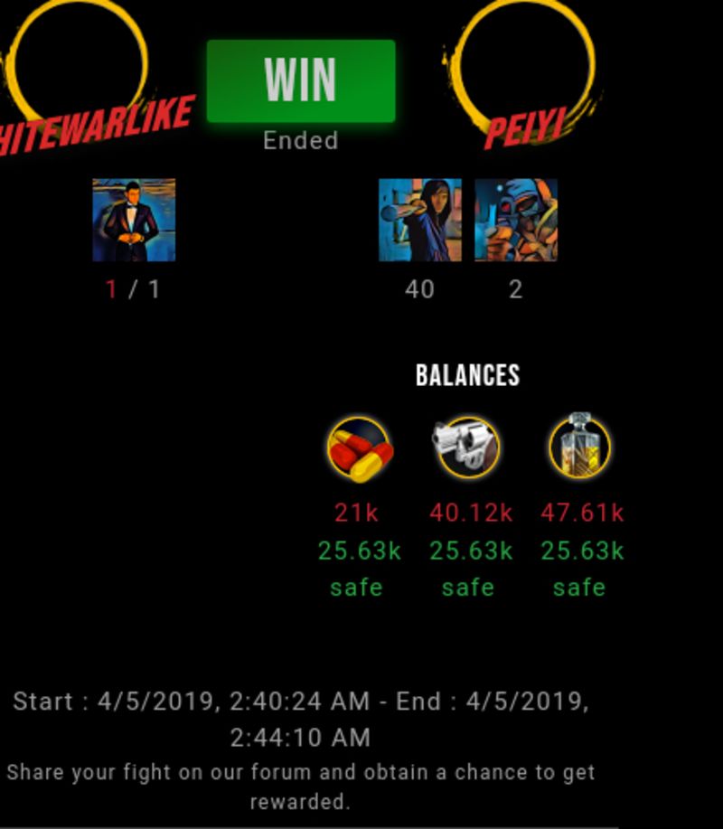 Check my latest fight ! whitewarlike vs peiyipeiyi (57)in #drugwars-fight • 7 years ago #gaming #fight #dw