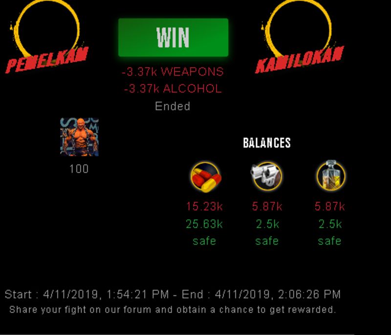 Check my latest fight ! pemelkam vs kamilokanpemelkam (36)in #drugwars-fight • 7 years ago #gaming #fight #dw