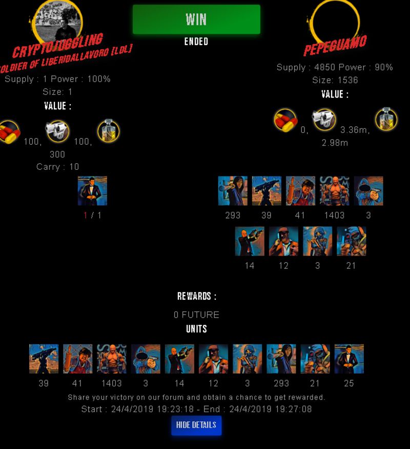 Congratulations @pepeguamo ! Your fight received an upvote of 1.1% from the King Dealer as incentive for your activity and as a gratitude for your support to the game.