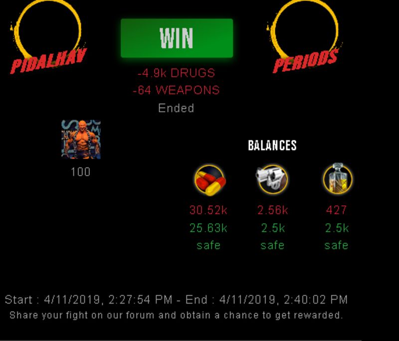 Check my latest fight ! pidalhav vs periodspidalhav (35)in #drugwars-fight • 7 years ago #gaming #fight #dw