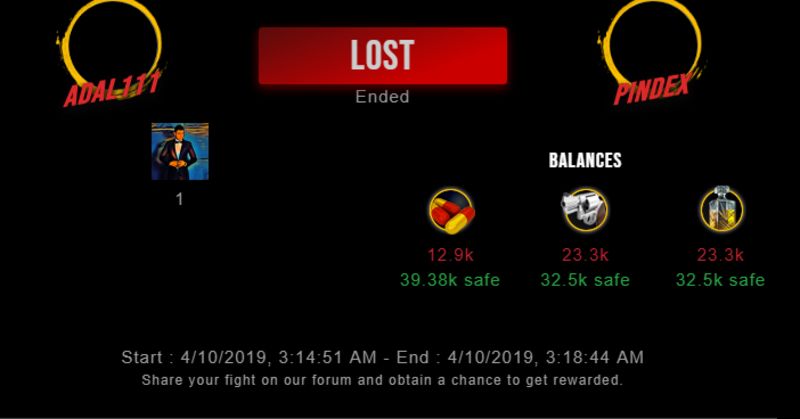 Congratulations @pindex ! Your fight received an upvote of 1.1% from the King Dealer as incentive for your activity and as a gratitude for your support to the game.