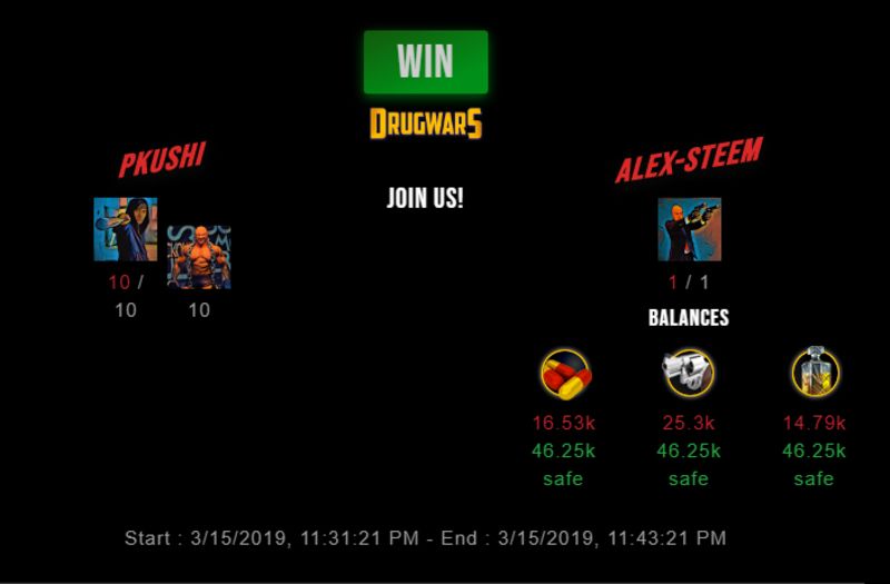 Check my latest fight ! pkushi vs alex-steempkushi (41)in #drugwars-fight • 7 years ago #gaming #fight #dw