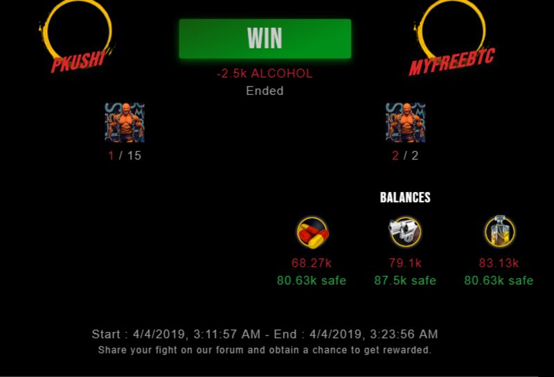 Check my latest fight ! pkushi vs myfreebtcpkushi (41)in #drugwars-fight • 7 years ago #gaming #fight #dw