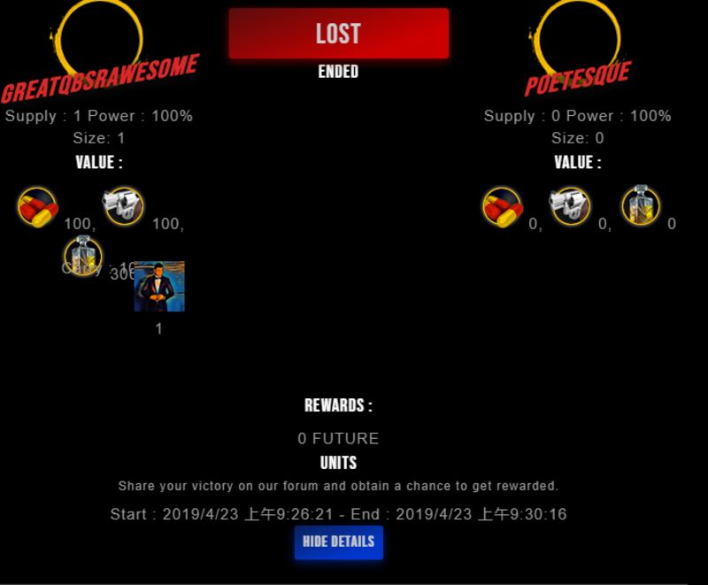 Congratulations @poetesque ! Your fight received an upvote of 12% from the Dealer as incentive for your activity and as a gratitude for your support to the game.