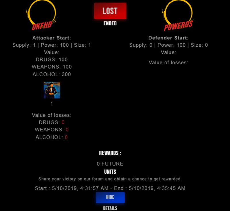 Congratulations @poweros ! Your fight received an upvote of 2.2% from the King Dealer as incentive for your activity and as a gratitude for your support to the game.