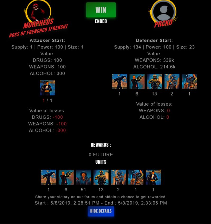 Check my latest fight ! morpheus vs prckoprcko (60)in #drugwars-fight • 7 years ago #gaming #fight #dw