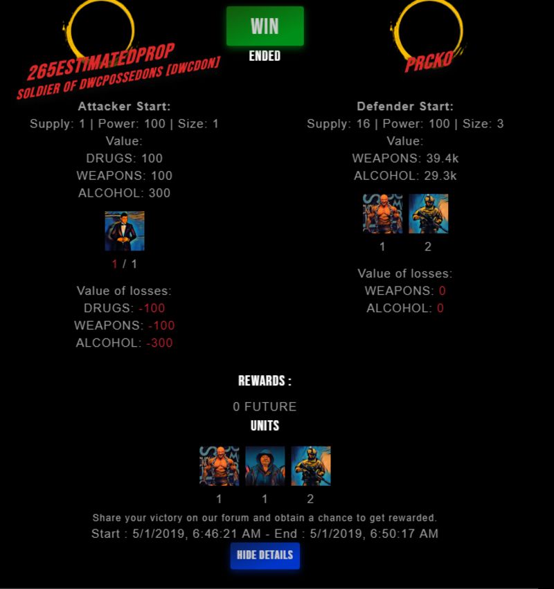 Check my latest fight ! 265estimatedpr0p vs prckoprcko (60)in #drugwars-fight • 7 years ago #gaming #fight #dw