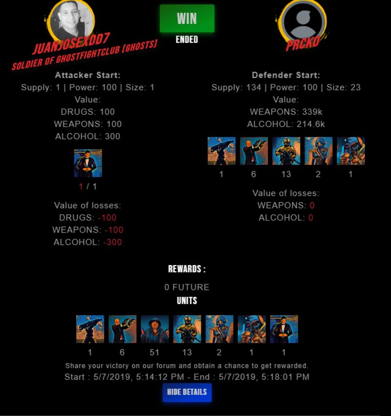 Check my latest fight ! juanjosexdd7 vs prckoprcko (60)in #drugwars-fight • 7 years ago #gaming #fight #dw