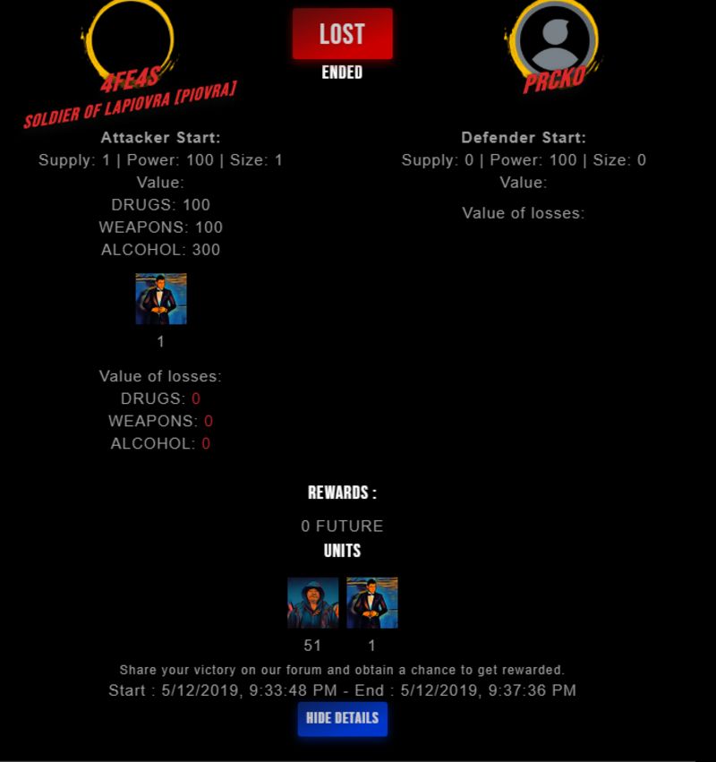 Congratulations @prcko ! Your fight received an upvote of 2.7% from the King Dealer as incentive for your activity and as a gratitude for your support to the game. Want to know more about DrugWars.io?