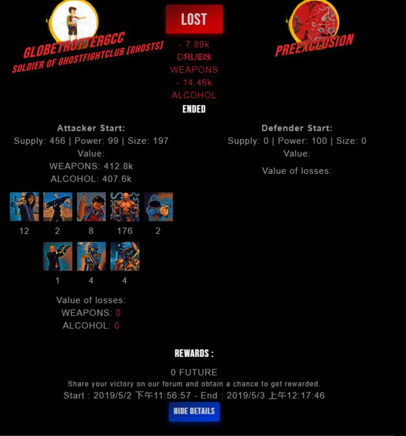 Check my latest fight ! globetrottergcc vs preexclusionpreexclusion (29)in #drugwars-fight • 7 years ago #gaming #fight #dw