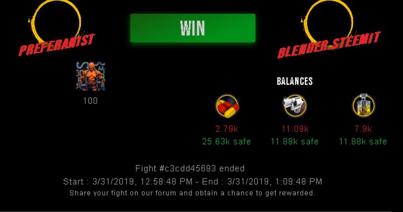 Check my latest fight ! preferanist vs blender.steemitpreferanist (39)in #drugwars-fight • 7 years ago #gaming #fight #dw