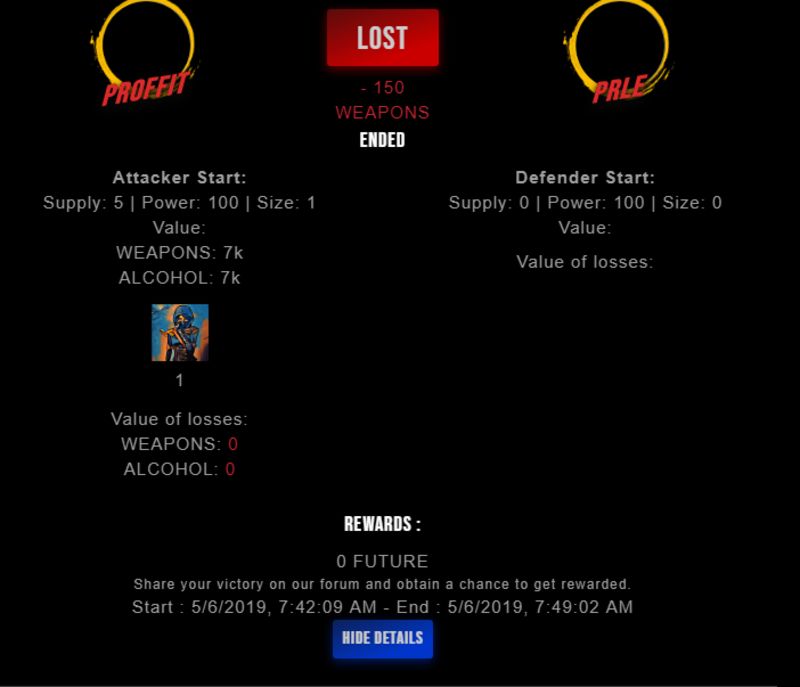 Congratulations @prle ! Your fight received an upvote of 6% from the Dealer as incentive for your activity and as a gratitude for your support to the game.