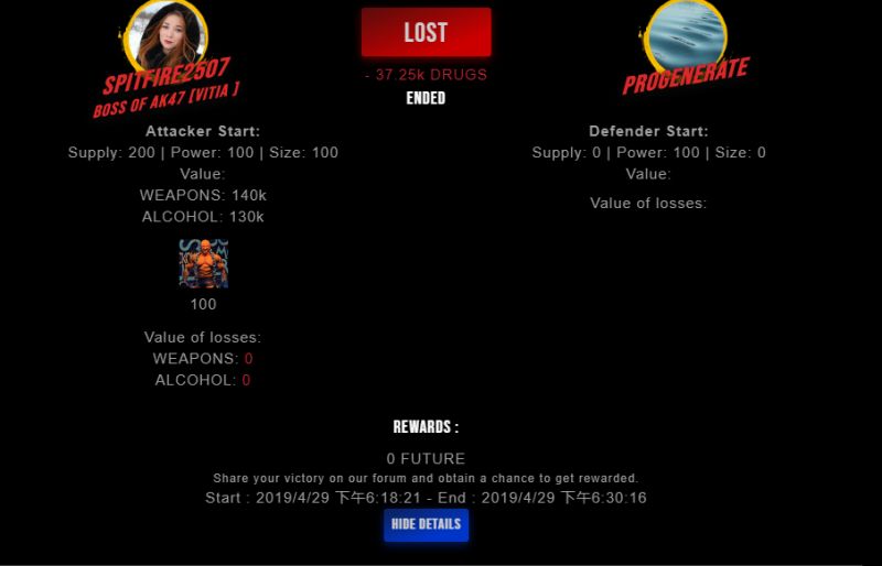Check my latest fight ! spitfire2507 vs progenerateprogenerate (25)in #drugwars-fight • 7 years ago #gaming #fight #dw